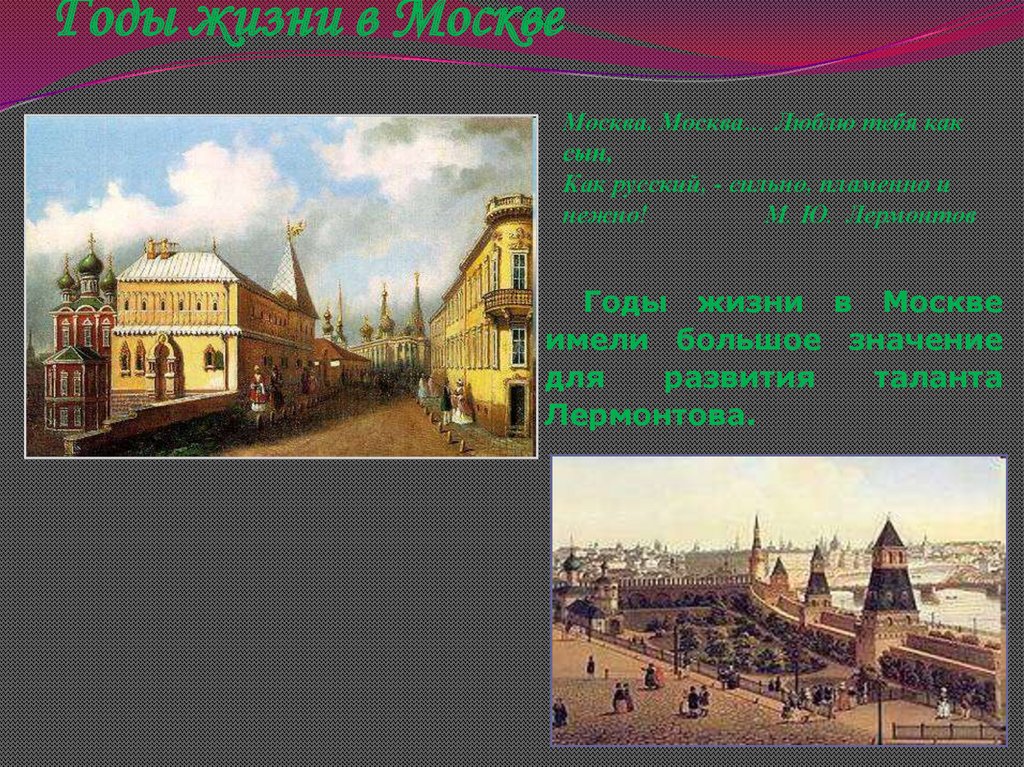 Годы жизни в МосквеМосква, Москва… Люблю тебя как