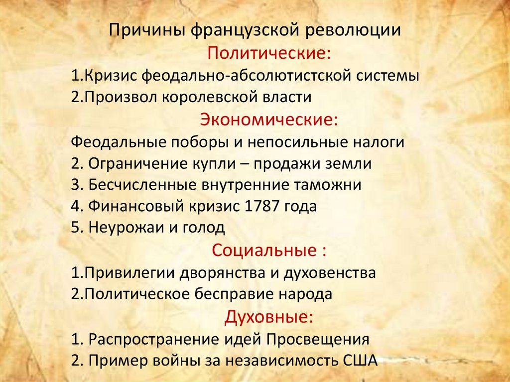 Причины французской революцииПолитические: