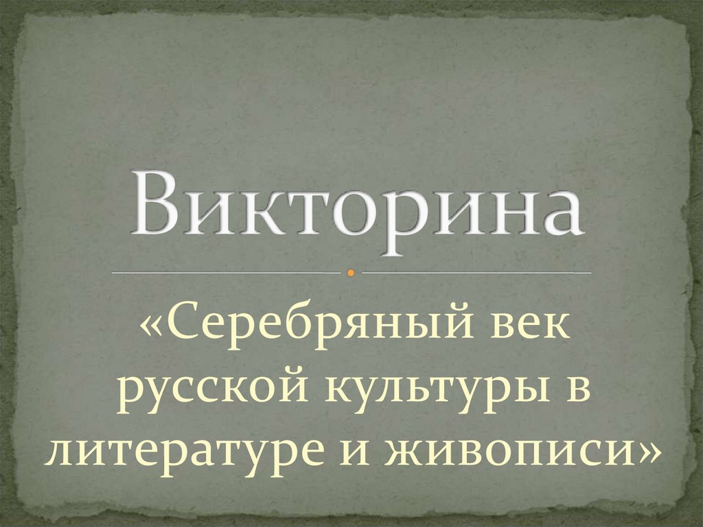 Серебряный век русской культуры в литературе и живописи