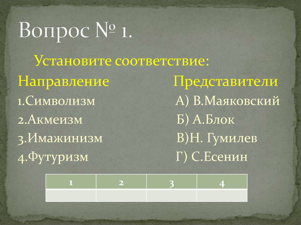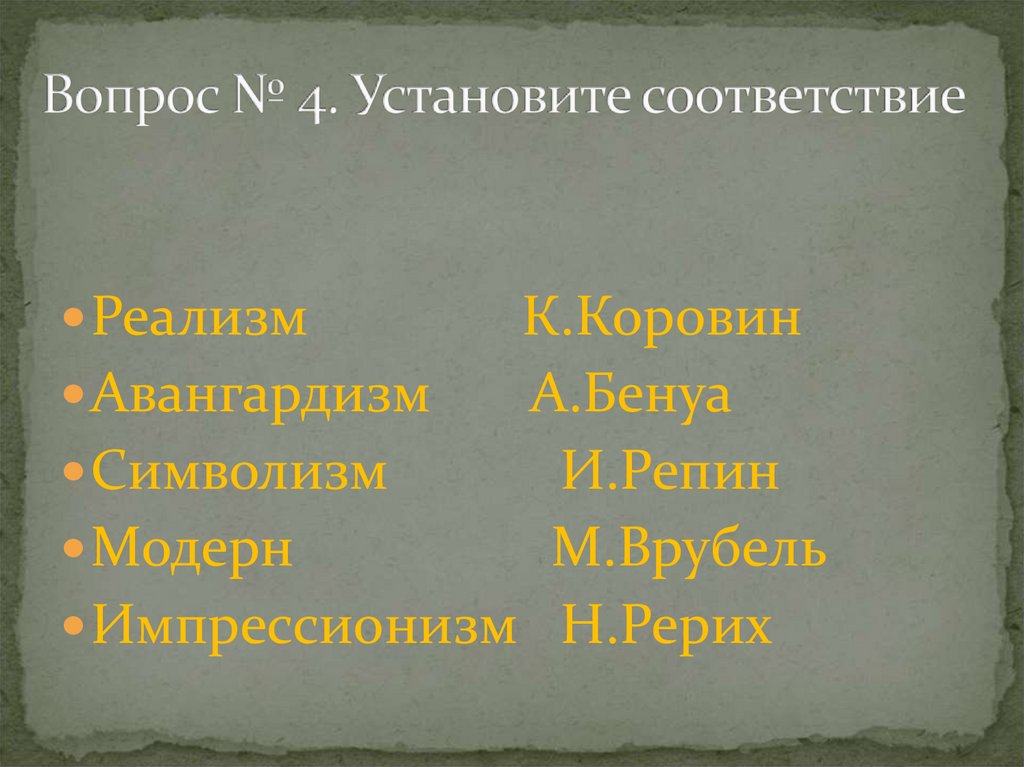 5. Вопрос № 4. Установите соответствие