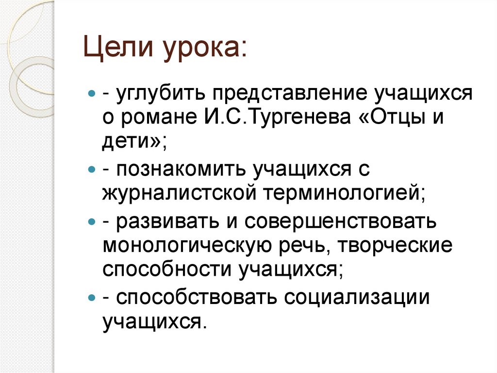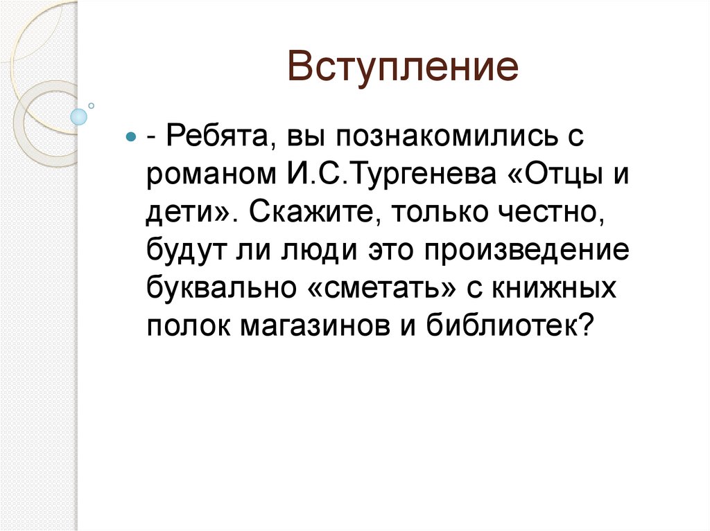 Урок по романуИ.С.Тургенева «Отцы и дети»