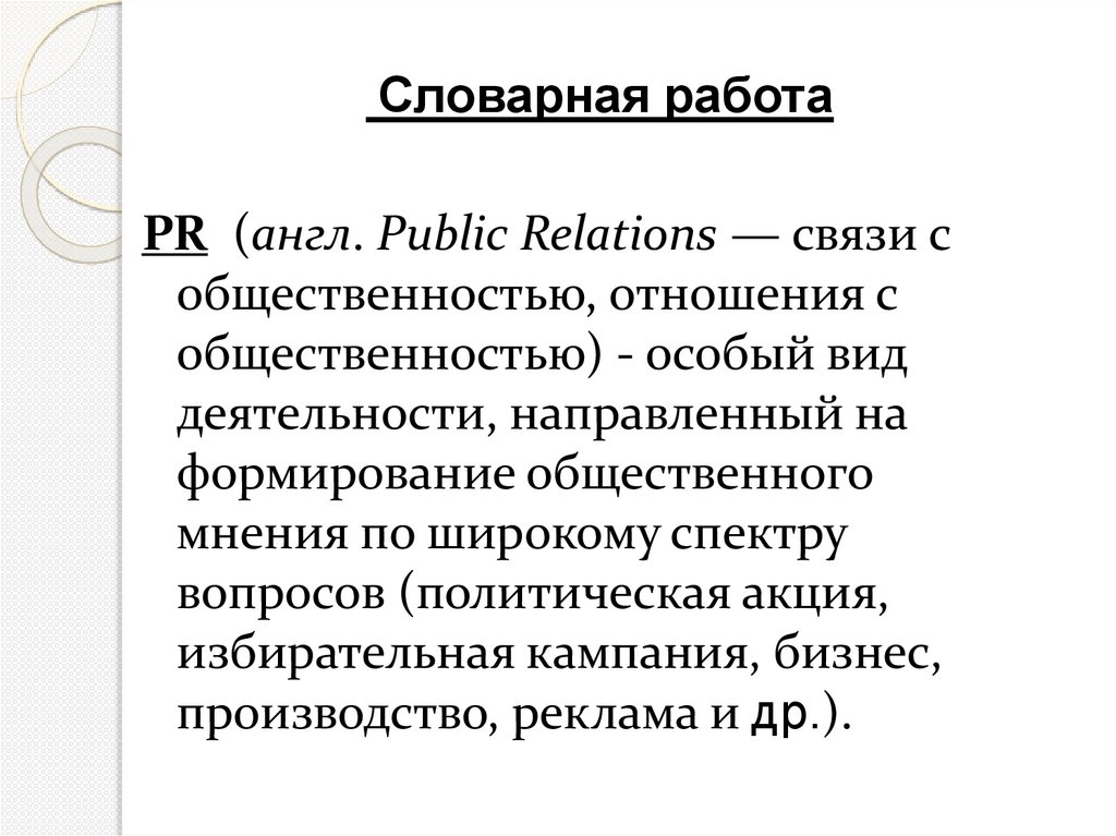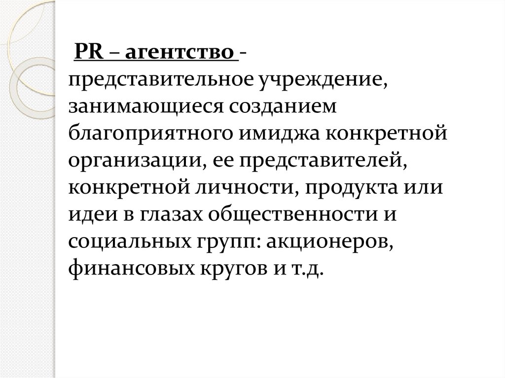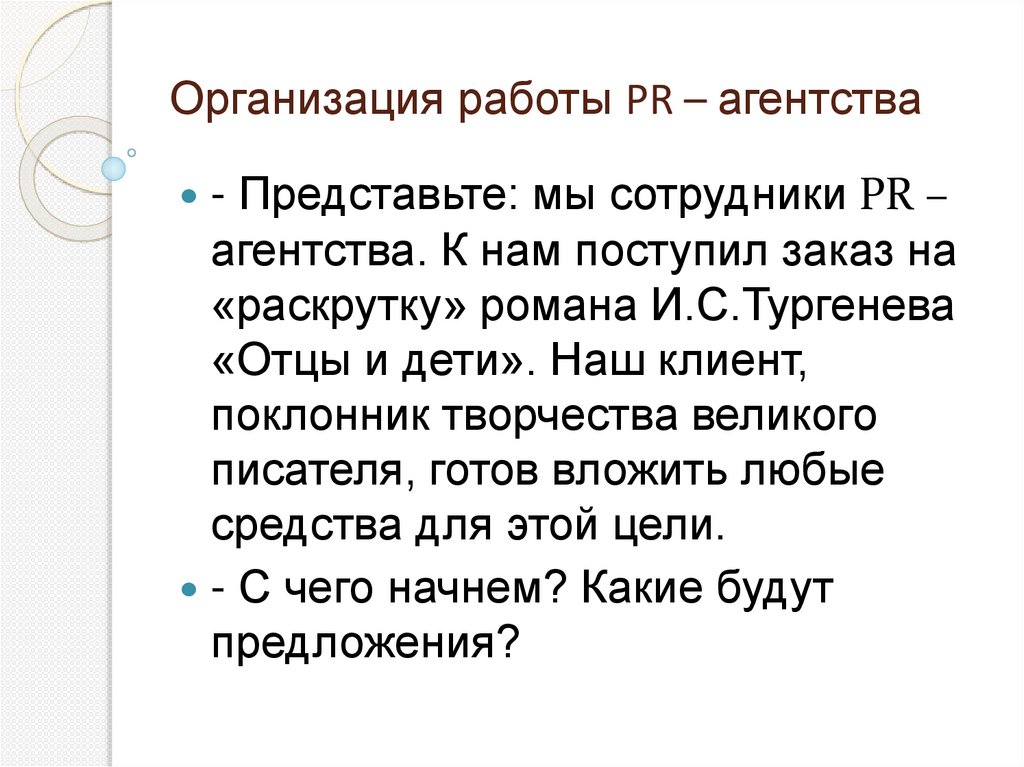 Организация работы PR – агентства- Представьте: мы сотрудники PR –