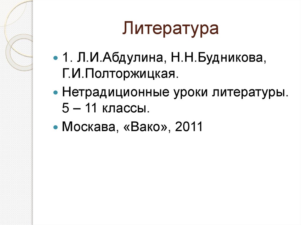 Литература1. Л.И.Абдулина, Н.Н.Будникова,