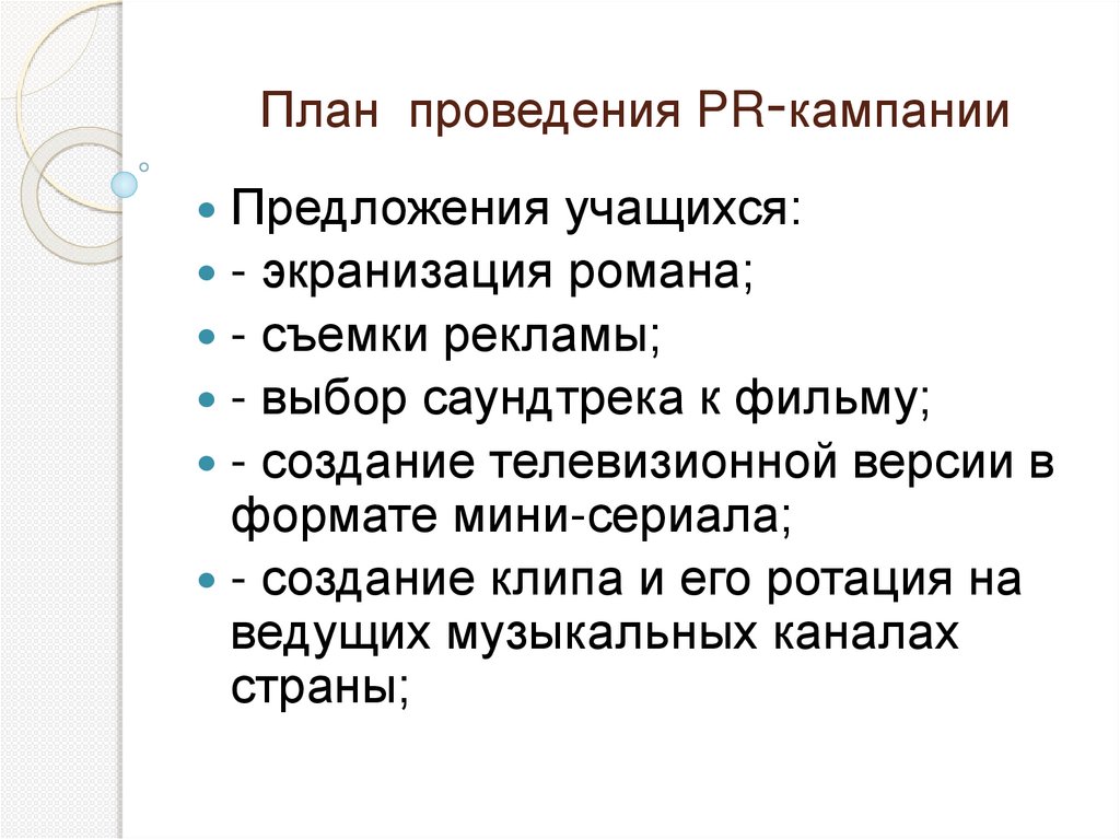проведенного в форме задания PRагентства, которое «раскручивало»