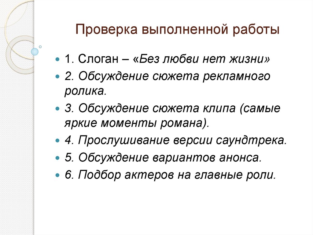 Проверка выполненной работы1. Слоган – «Без любви нет жизни»