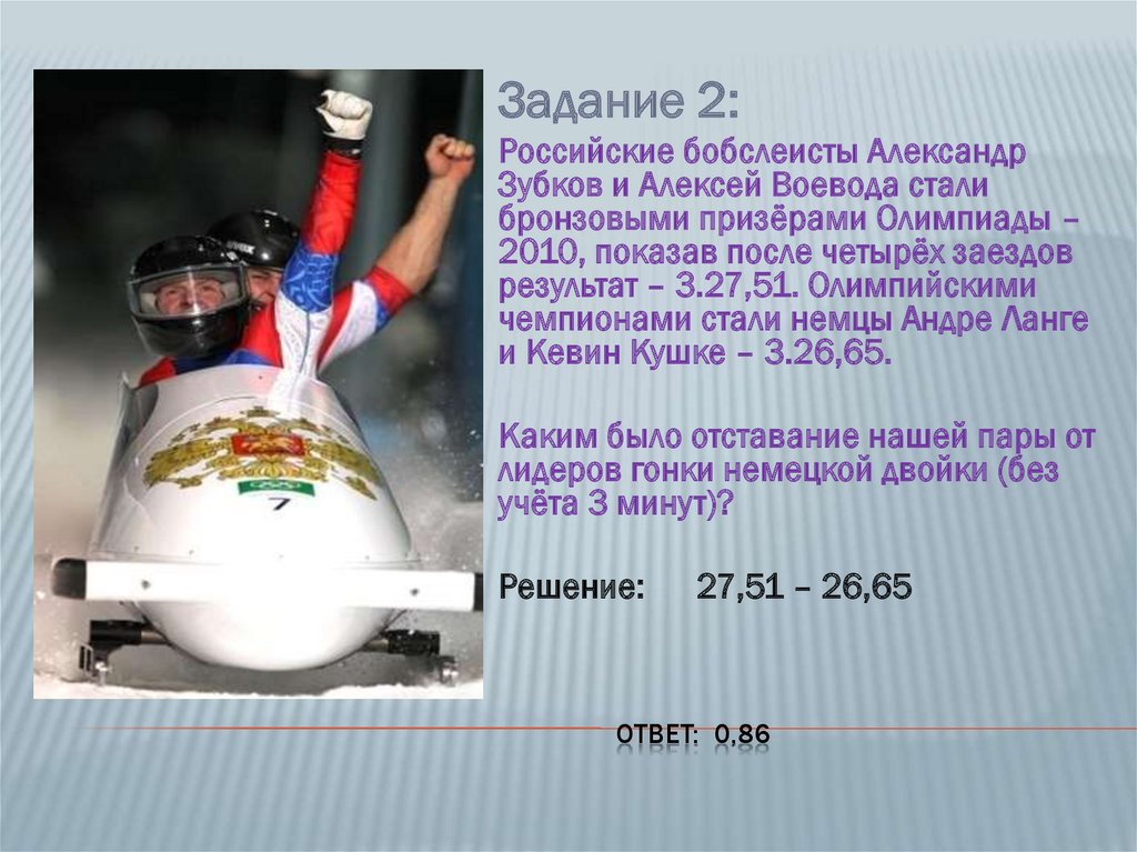 Задание 2:Российские бобслеисты Александр
