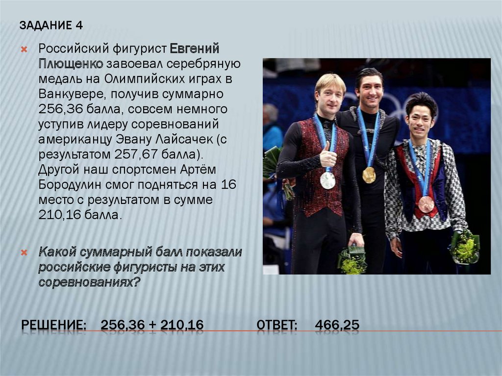 ЗАДАНИЕ 4Российский фигурист Евгений