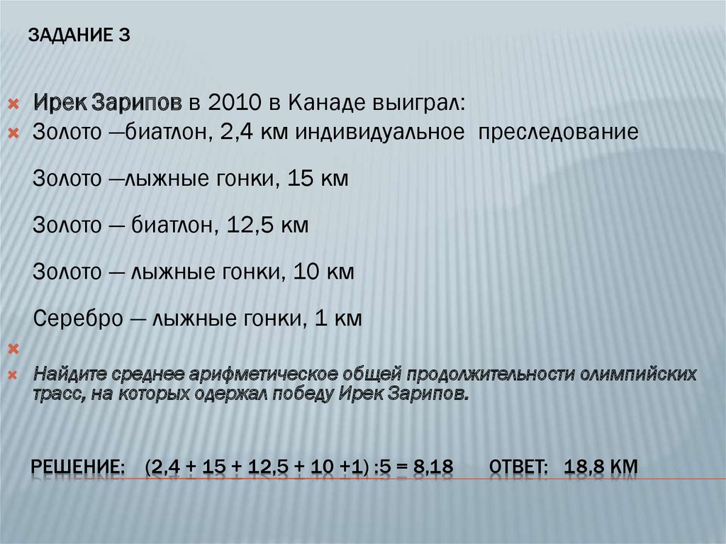 ЗАДАНИЕ 3Ирек Зарипов в 2010 в Канаде выиграл: