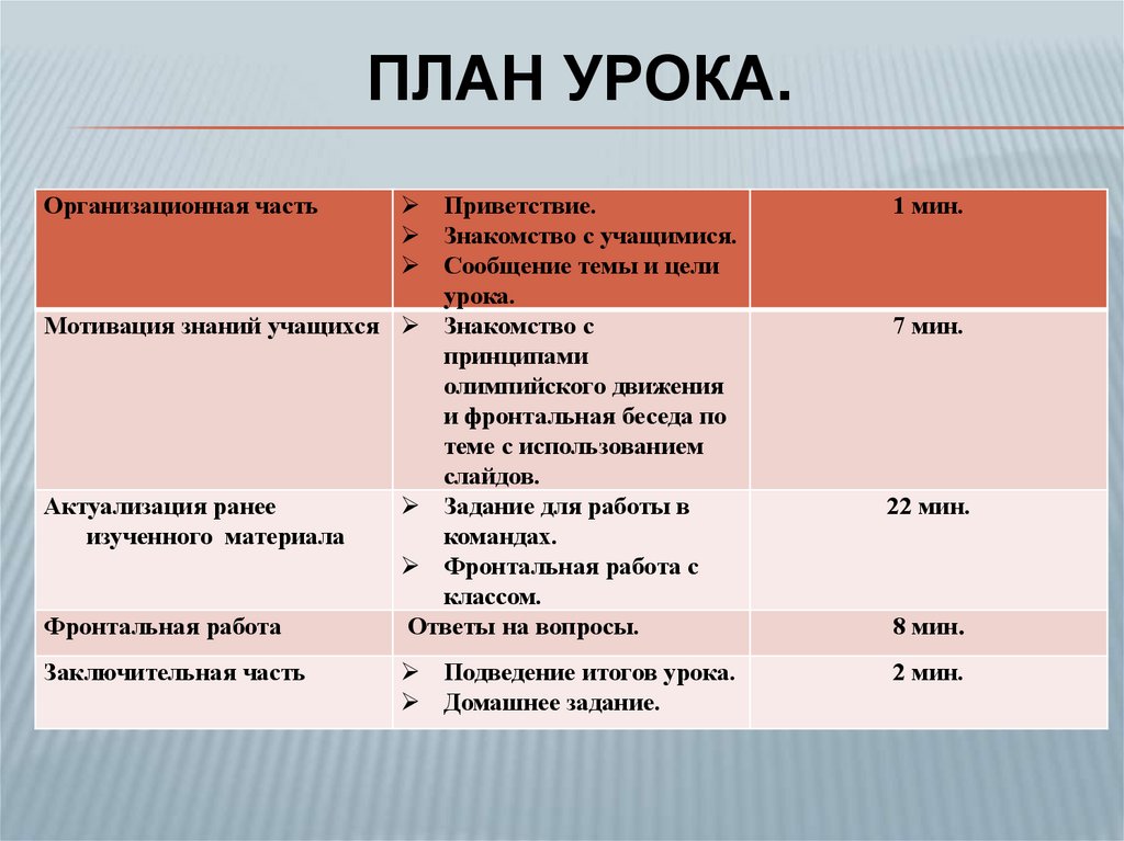 ПЛАН УРОКА.Приветствие.
