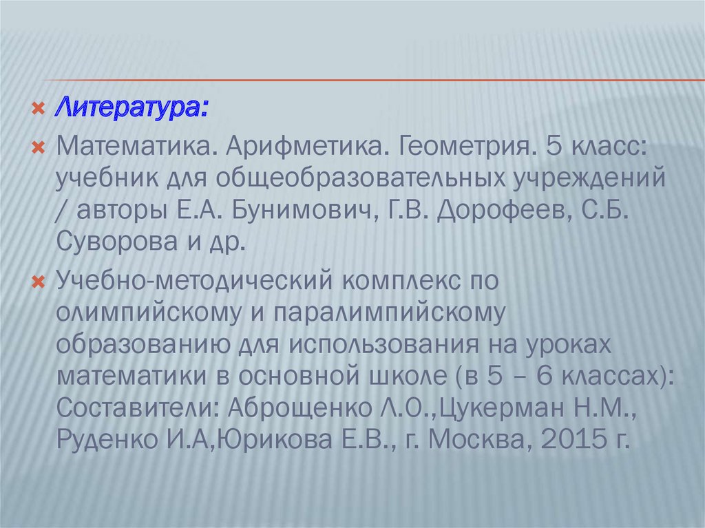 Литература:Математика. Арифметика. Геометрия. 5 класс:
