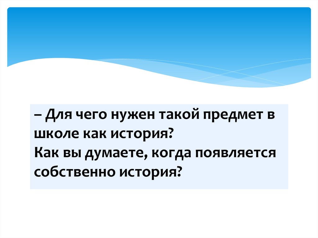 – Для чего нужен такой предмет вшколе как история?