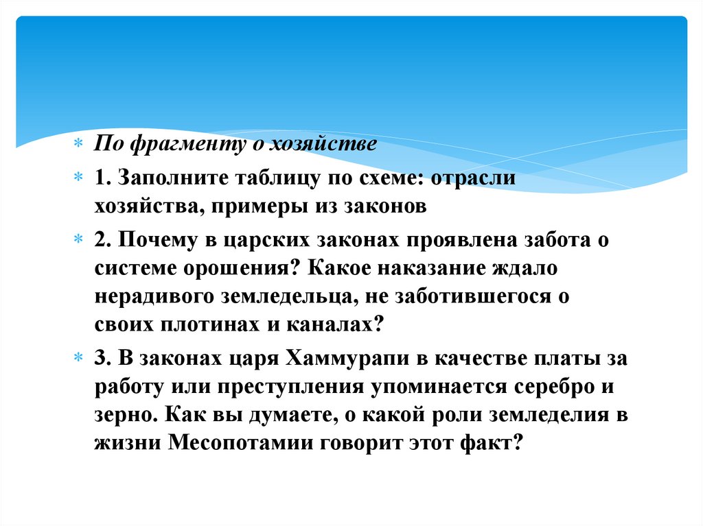 Хаммурапи и попробуем ответить на вопросы: