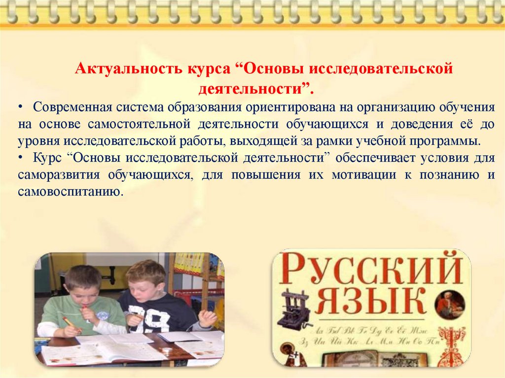 Актуальность курса “Основы исследовательскойдеятельности”.