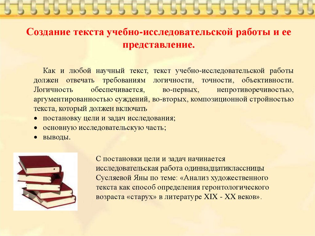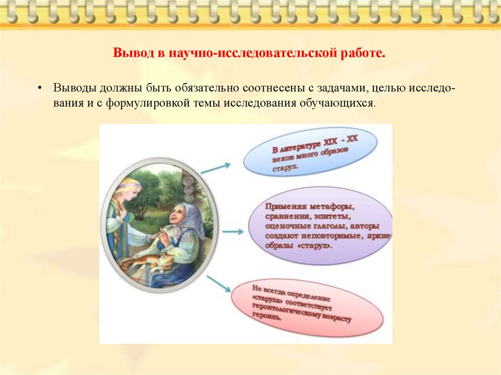 Вывод в научно-исследовательской работе.• Выводы должны быть обязательно соотнесены с задачами, целью исследования и с формулировкой темы исследования обучающихся.