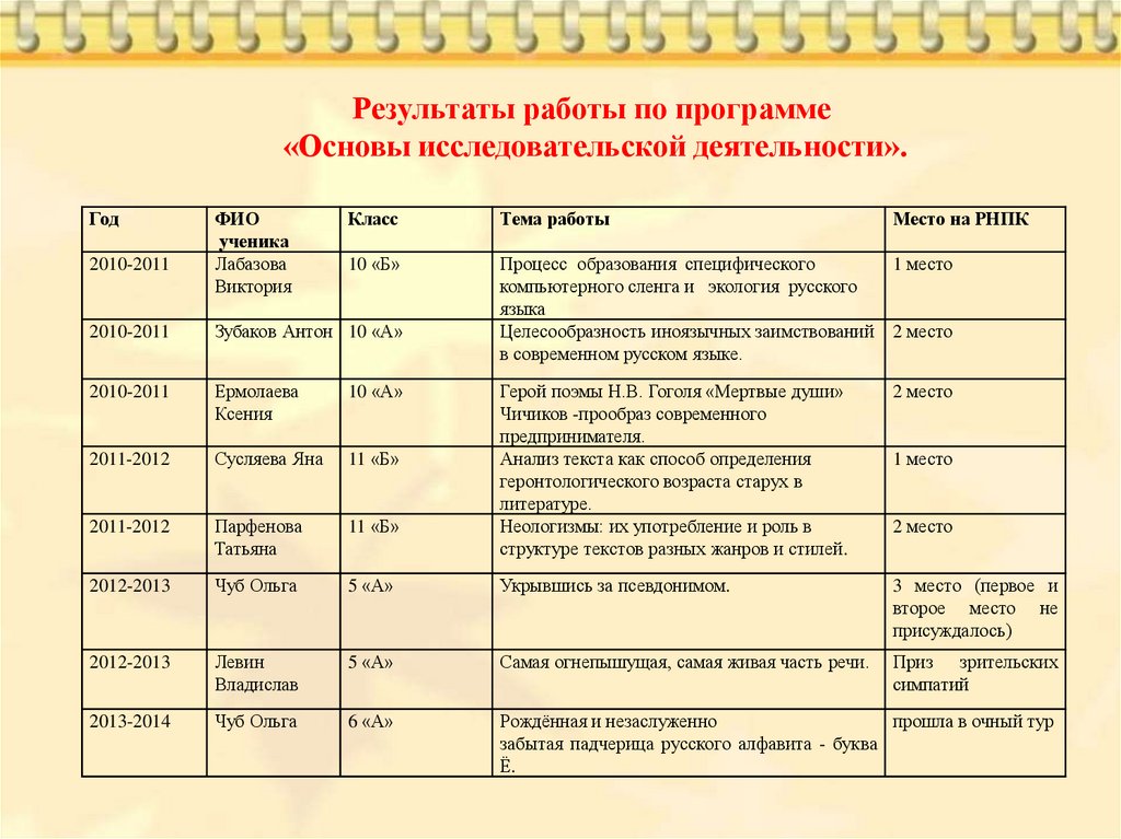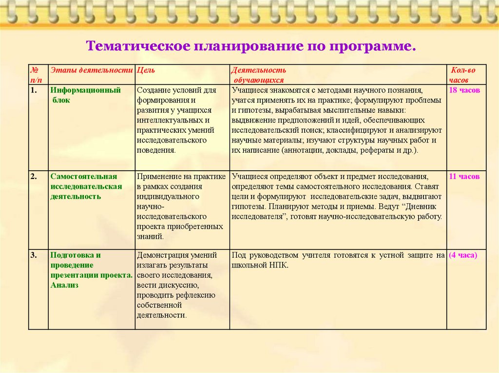 • Курс “Основы исследовательской деятельности” обеспечивает условия для