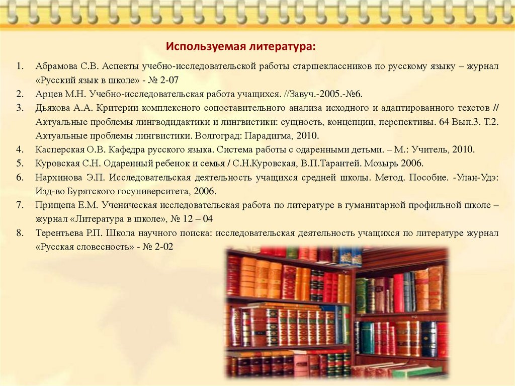 Терентьева Р.П. Школа научного поиска: исследовательская деятельность учащихся по литературе журнал