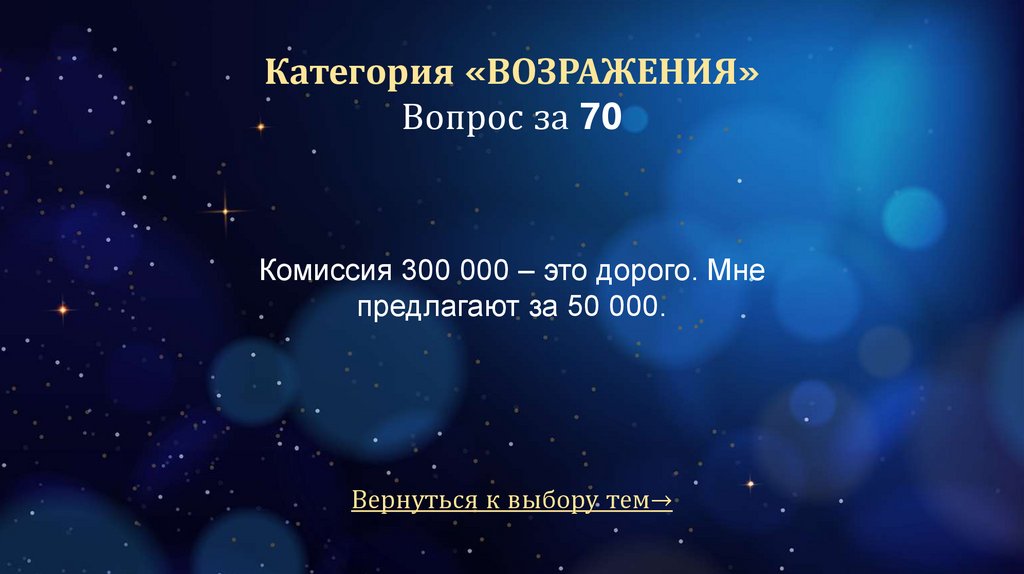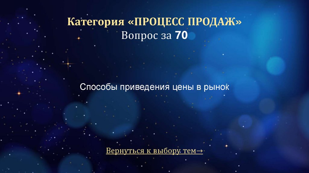 Категория «ПРОЦЕСС ПРОДАЖ»Вопрос за 70