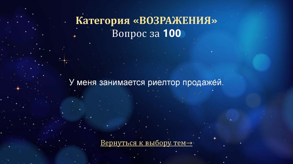 Категория «ВОЗРАЖЕНИЯ»Вопрос за 100