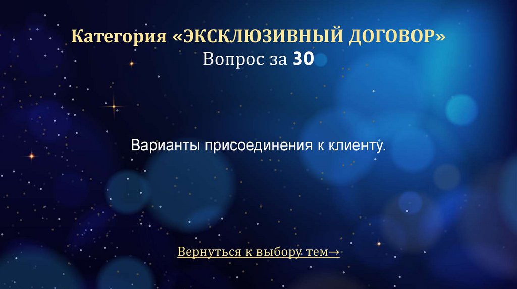 Категория «ЭКСКЛЮЗИВНЫЙ ДОГОВОР»Вопрос за 30