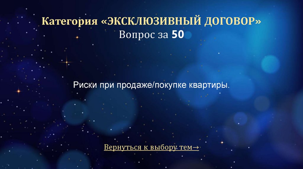 Категория «ЭКСКЛЮЗИВНЫЙ ДОГОВОР»Вопрос за 50