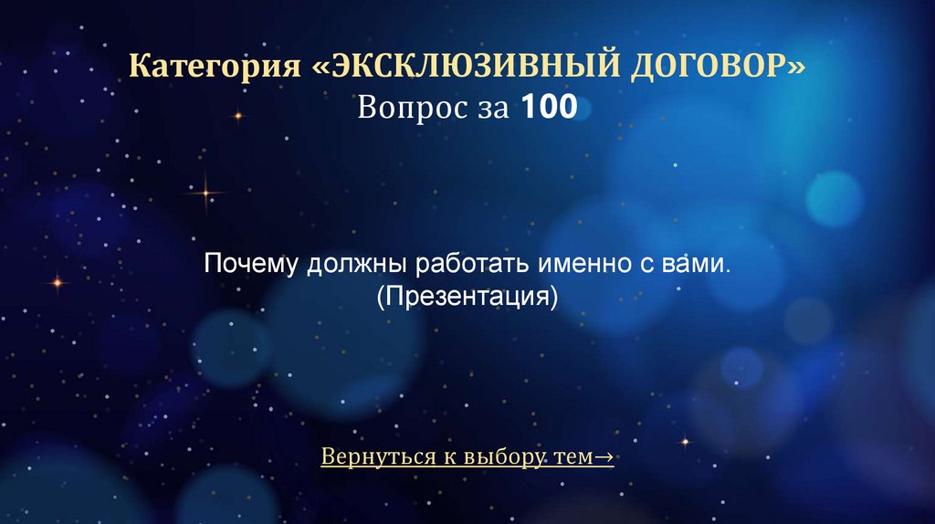 Категория «ЭКСКЛЮЗИВНЫЙ ДОГОВОР»Вопрос за 100