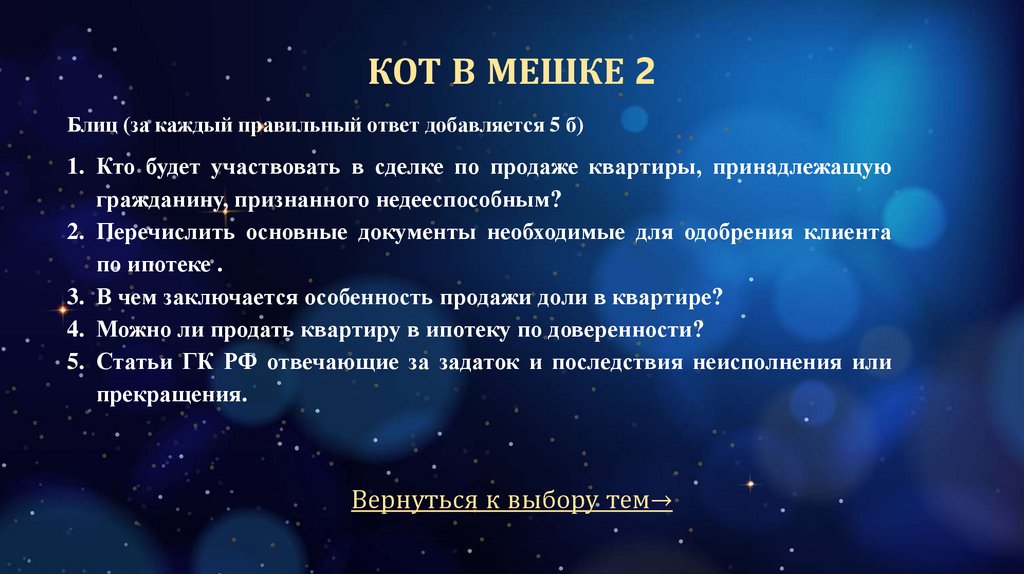 КОТ В МЕШКЕ 2Блиц (за каждый правильный ответ добавляется 5 б)