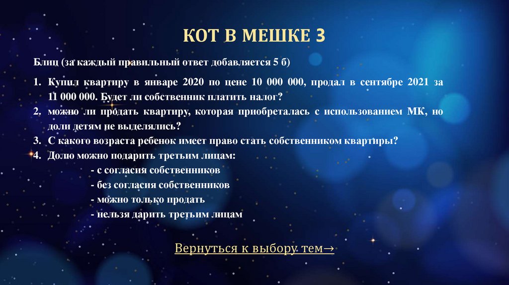 КОТ В МЕШКЕ 3Блиц (за каждый правильный ответ добавляется 5 б)
