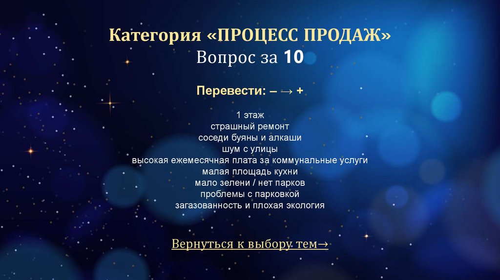 Категория «ПРОЦЕСС ПРОДАЖ»Вопрос за 10