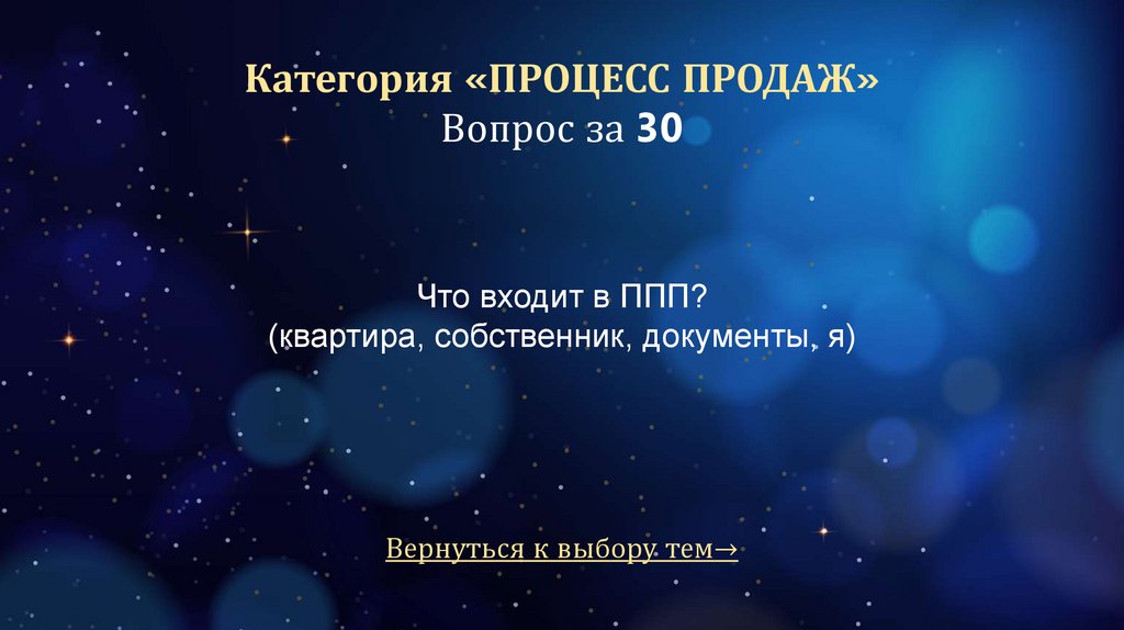 Категория «ПРОЦЕСС ПРОДАЖ»Вопрос за 30