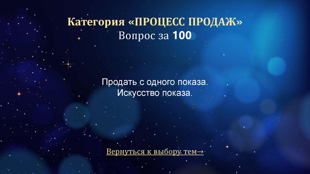 Категория «ПРОЦЕСС ПРОДАЖ»Вопрос за 100