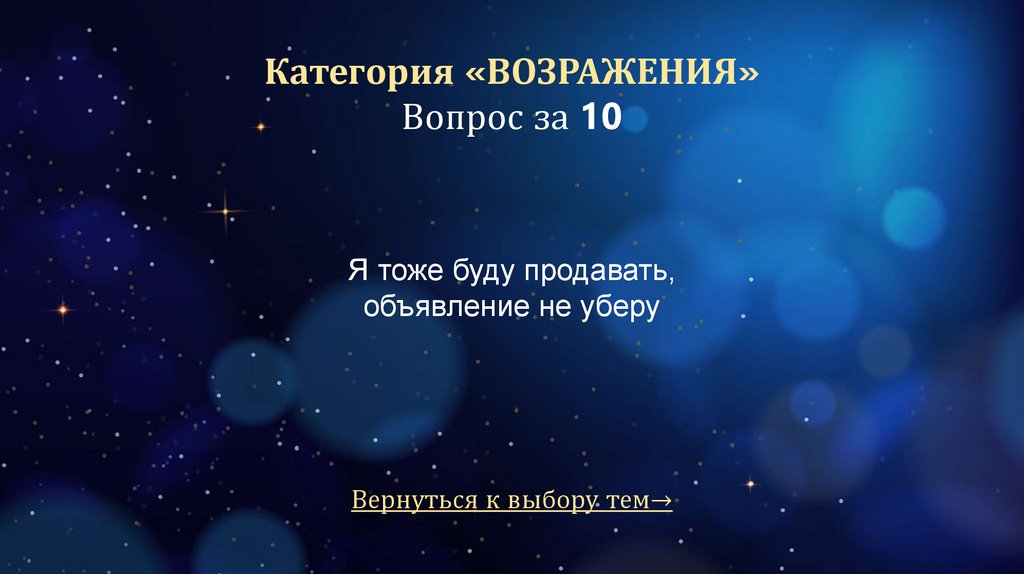Категория «ВОЗРАЖЕНИЯ»Вопрос за 10