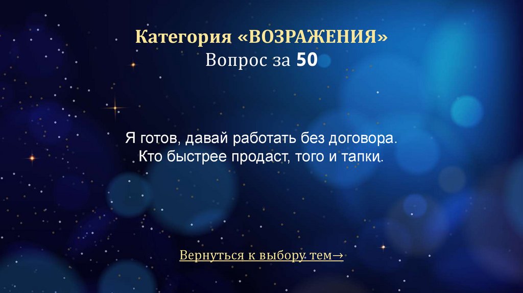 Категория «ПРОЦЕСС ПРОДАЖ»Вопрос за 50