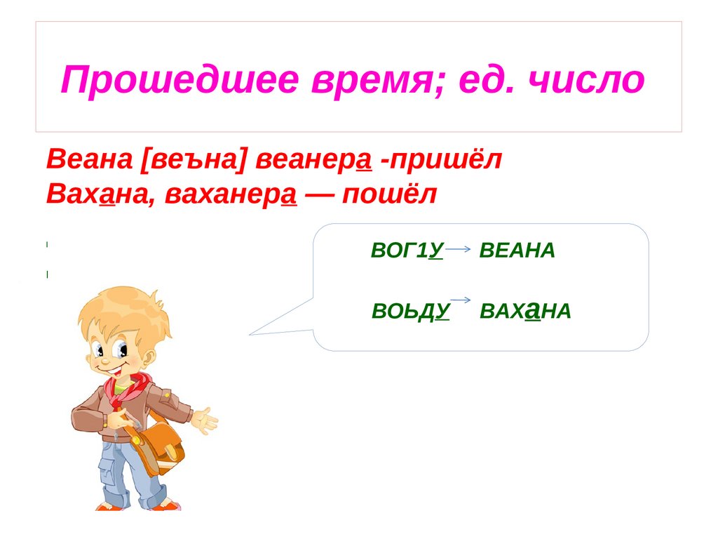 Ед. число наст., прош., будущ. времени.Вог1у – веана- вог1ур ву