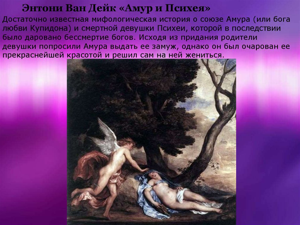 Энтони Ван Дейк «Амур и Психея»Достаточно известная мифологическая история о союзе Амура (или бога