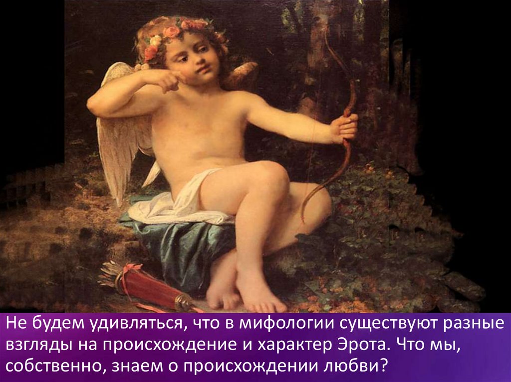 Не будем удивляться, что в мифологии существуют разныевзгляды на происхождение и характер Эрота. Что мы,