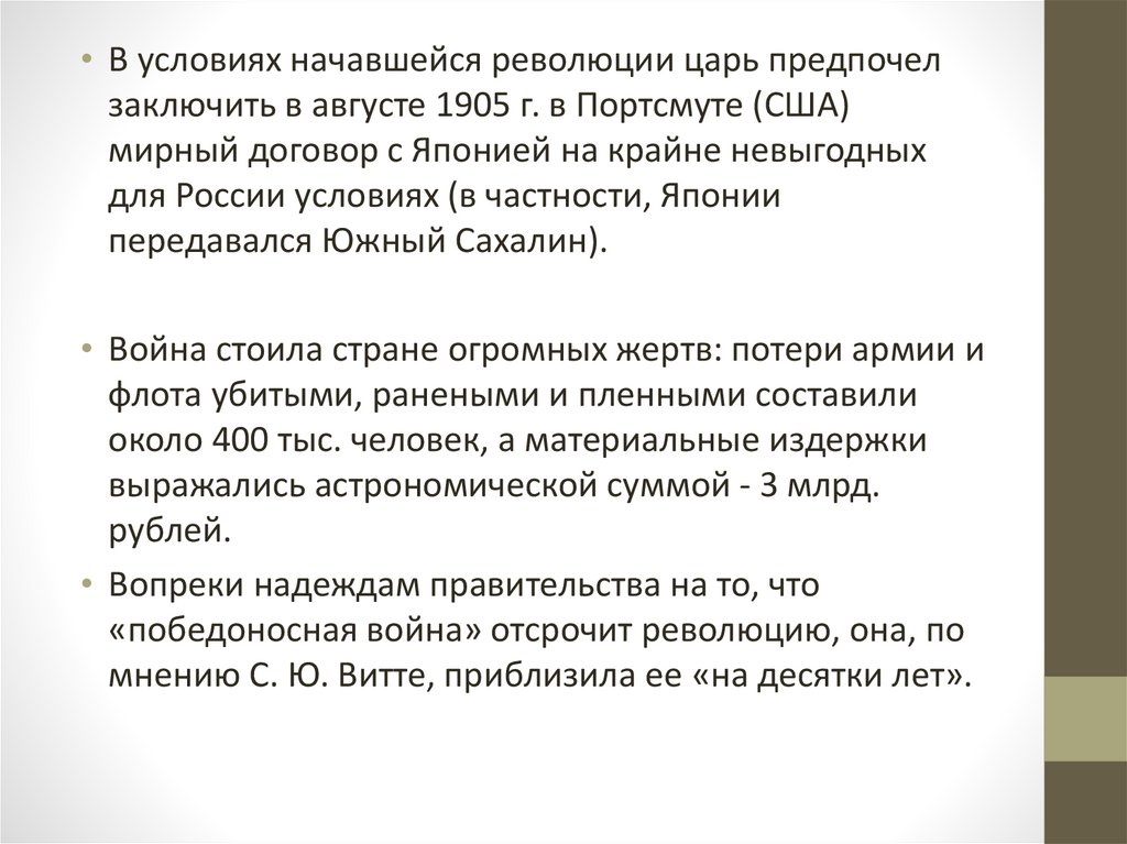 • В условиях начавшейся революции царь предпочелзаключить в августе 1905 г. в Портсмуте (США)