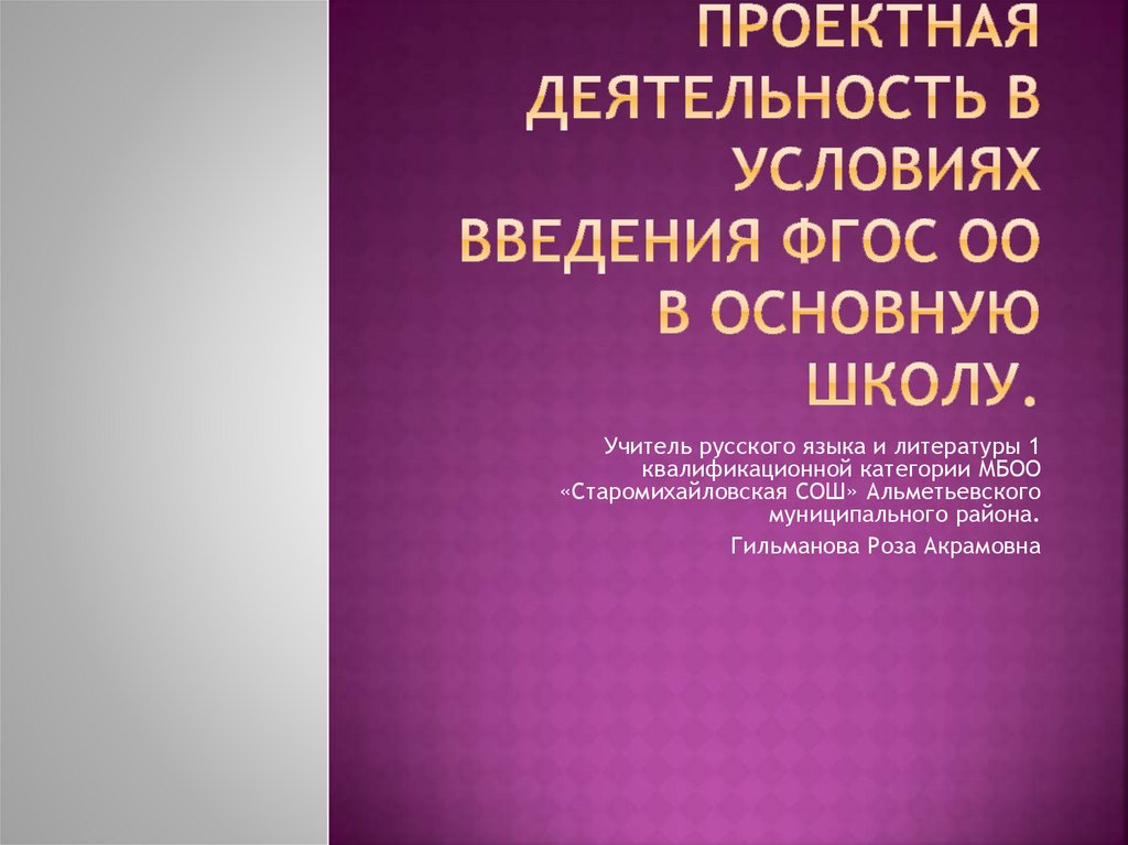 Проектная деятельность в условиях введения ФГОС ОО в основную школу