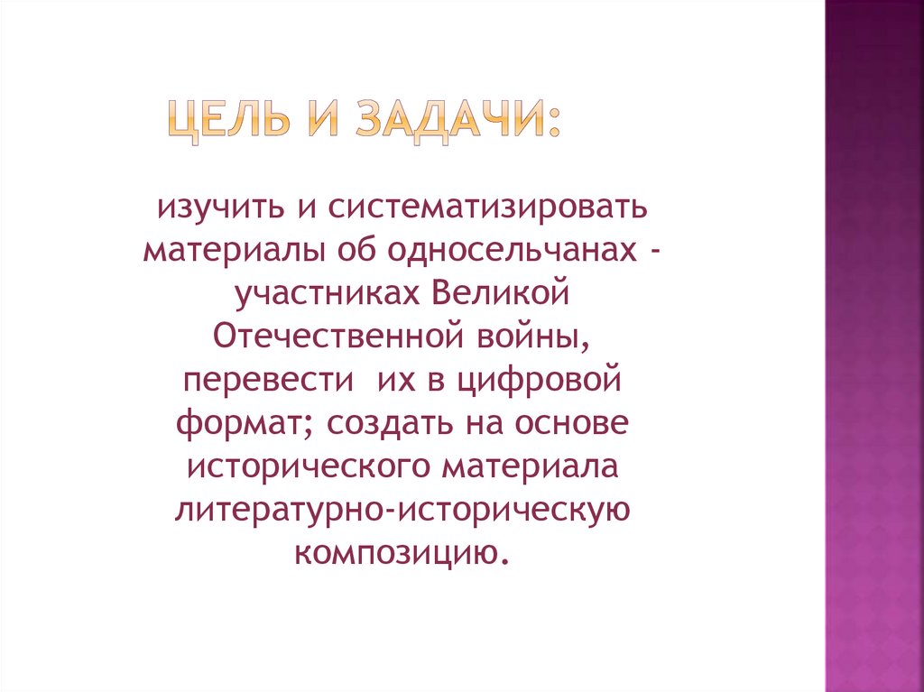 изучить и систематизироватьматериалы об односельчанах участниках Великой