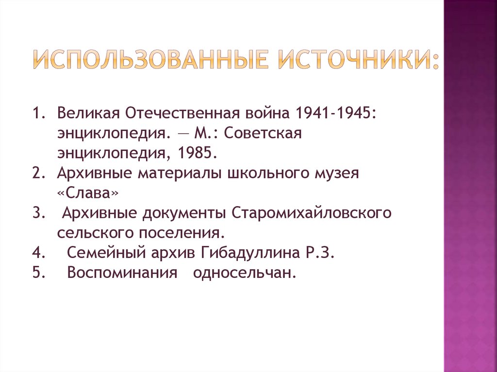 1. Великая Отечественная война 1941-1945:энциклопедия. — М.: Советская