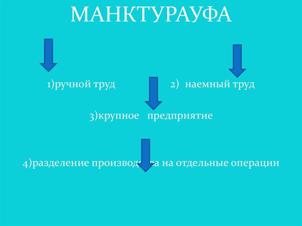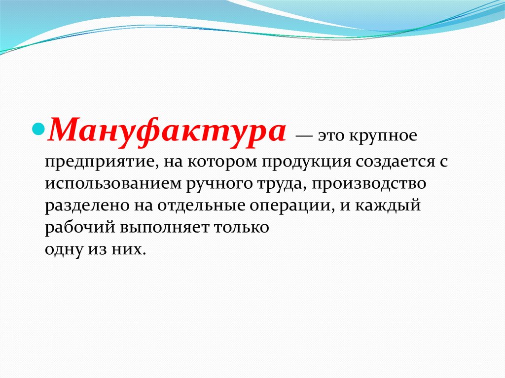 Мануфактура — это крупноепредприятие, на котором продукция создается с