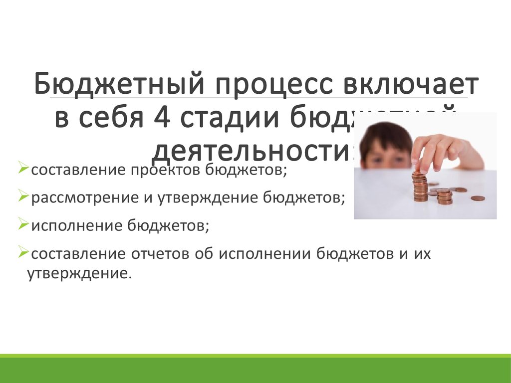 Бюджетный процесс включаетв себя 4 стадии бюджетной