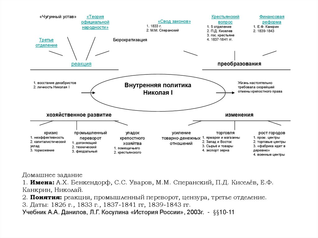 1. Имена: А.Х. Бенкендорф, С.С. Уваров, М.М. Сперанский, П.Д. Киселёв, Е.Ф.