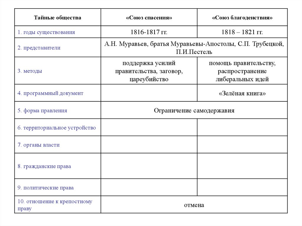 Тайные общества1. годы