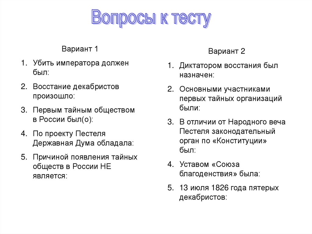 П.И. Пестель, А.П. Юшневский, С.И. МуравьевАпостол, М.П. Бестужев-Рюмин, С.Г. Волконский