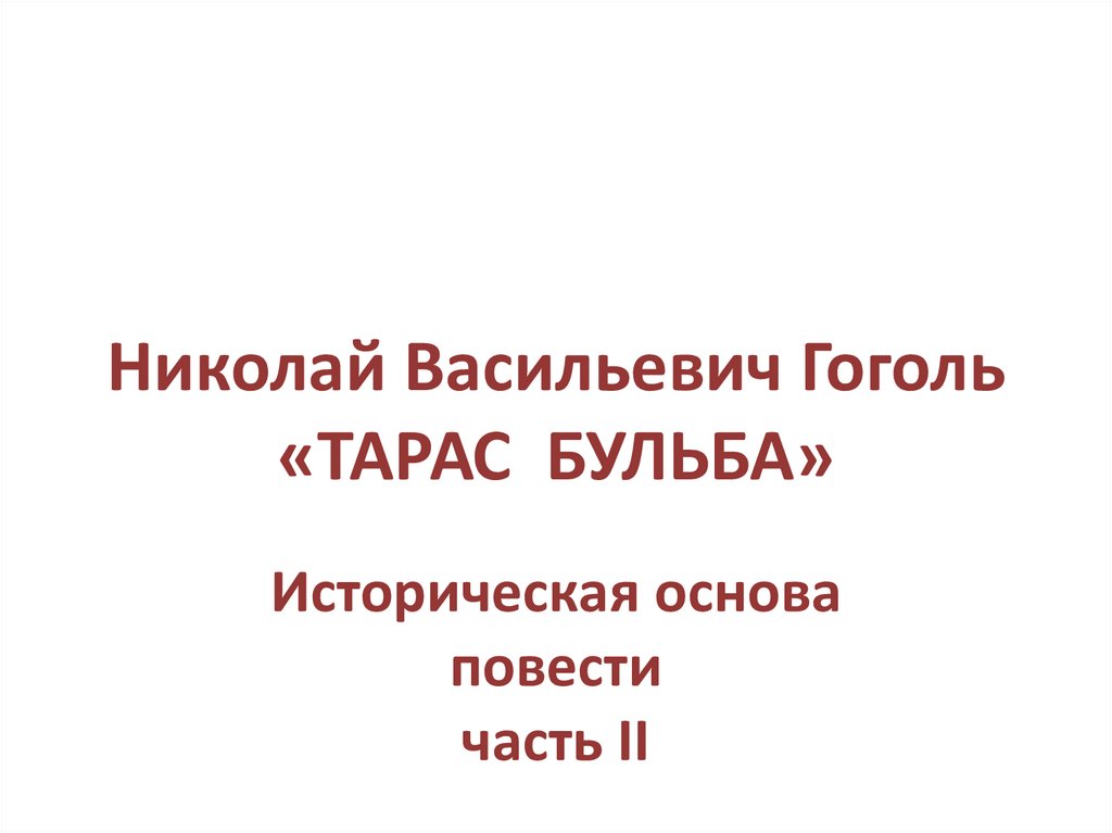 Николай Васильевич Гоголь «Тарас Бульба». Историческая основа повести. Часть II