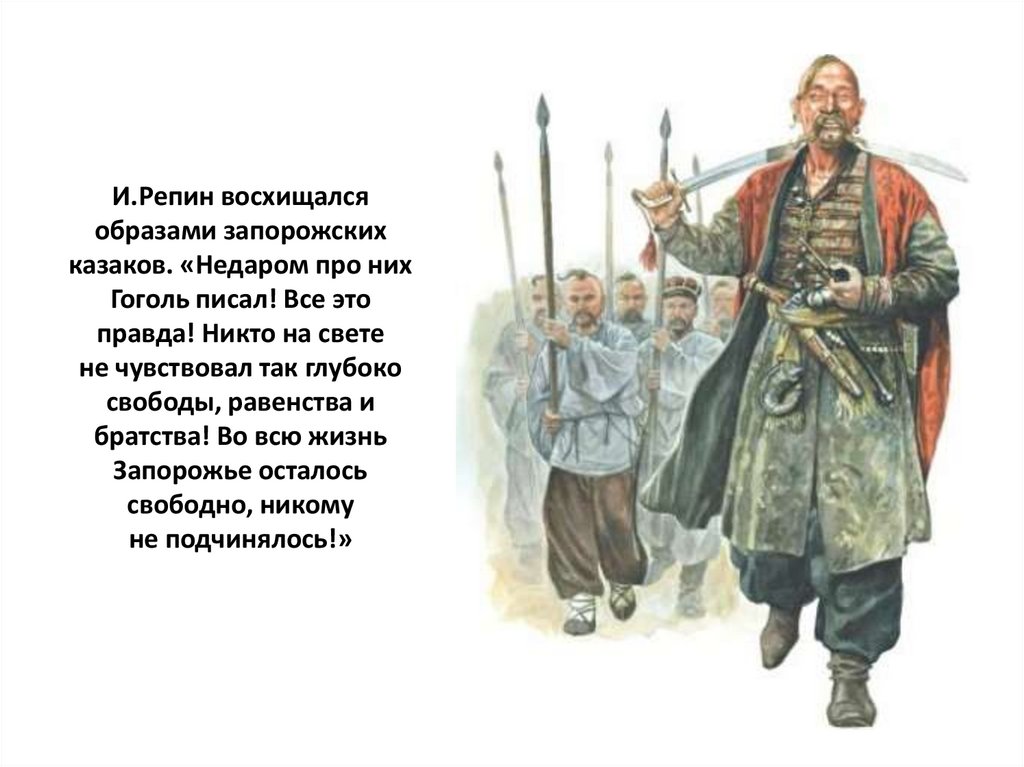 И.Репин восхищалсяобразами запорожских