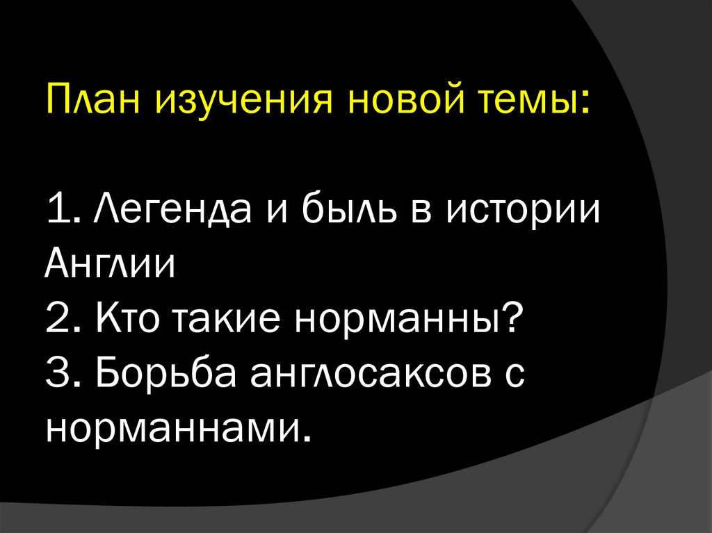 План изучения новой темы:1. Легенда и быль в истории