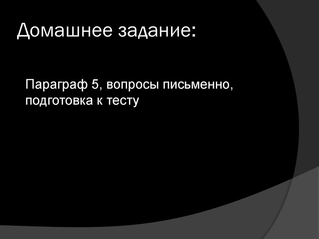Домашнее задание:Параграф 5, вопросы письменно,
