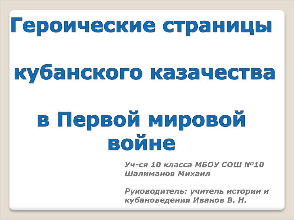 Уч-ся 10 класса МБОУ СОШ №10Шалиманов Михаил