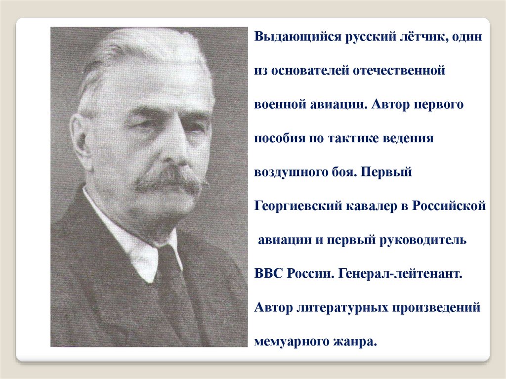 Выдающийся русский лётчик, одиниз основателей отечественной